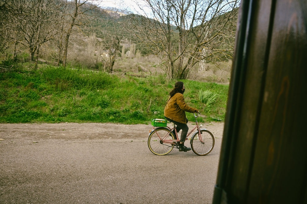 21 abril, 2020 unpuntocuriosoaragon Miriam-bibliotecaria-de-Villanua-haciendo-el-reparto-de-libros-en-la-Bibliocleta