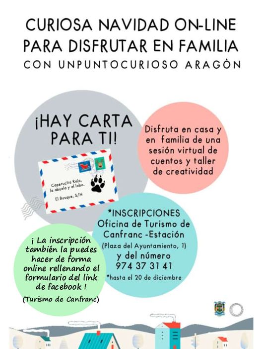 Os informamos también que, si queréis disfrutar de una CURIOSA NAVIDAD ON-LINE EN FAMILIA Y DESDE CASA con una sesión de cuentos y un taller creativo, podéis hacerlo a través de la OFICINA DE TURISMO DE CANFRANC (fecha límite 30 de diciembre):