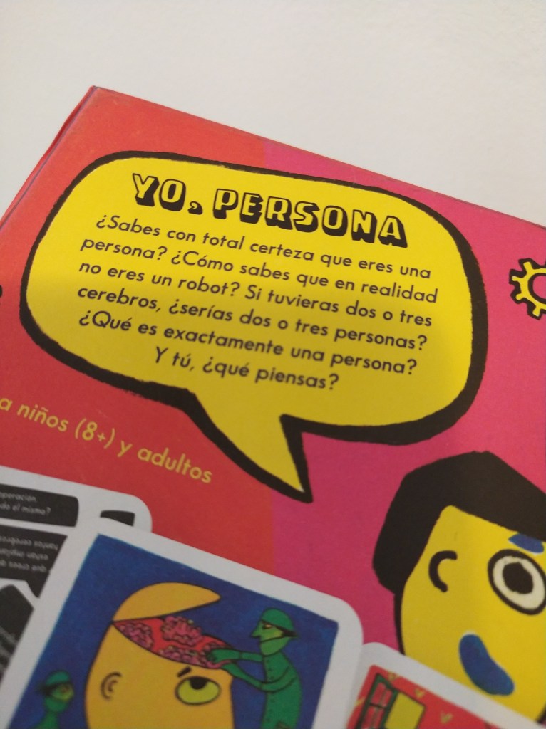 Esta tarde, además de ponernos al día sobre cómo han ido las vacaciones de Navidad, también hemos aprovechado los últimos días de #BibliojovenTakeAway y llevarnos nuestra «pizza cultural» con los ingredientes preferidos (libros, cine, música, videojuegos…) y, reflexionado sobre algunas de la grandes preguntas de la filosofía de forma divertida y atractiva gracias a los libros de Filosofía visual @wonderponderonline –@ellendrd y @daniela_martagon– concretamente con ‘YO, PERSONA’.