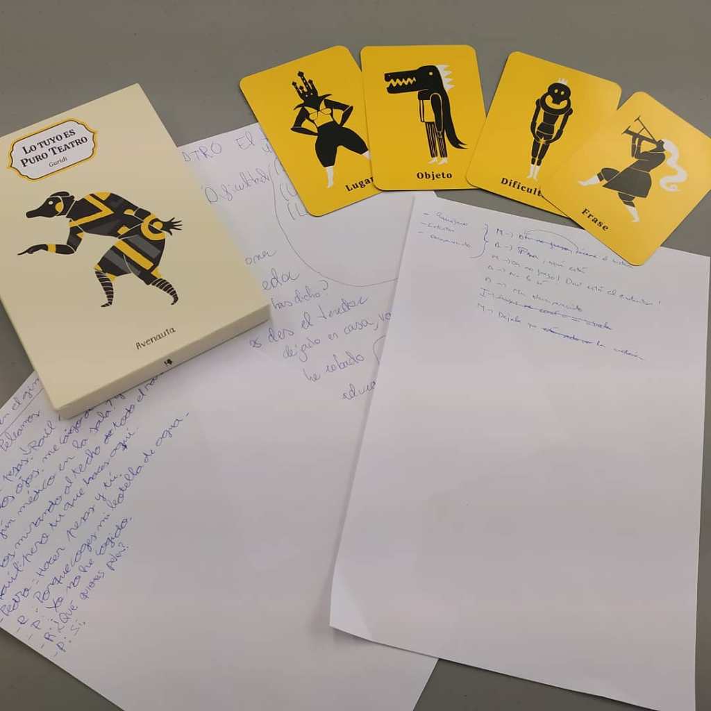 A partir del juego de improvisación «Lo tuyo es puro teatro» (@guridi___ , @avenauta ) hemos dejado volar la imaginación, la espontaneidad ha actuado la mar de a gusto y nosotr@s nos lo hemos pasado genial. Rápidamente nos hemos puesto a trabajar. Tan solo hemos tenido, cada grupo, tres minutos para crear y ensayar su micro obra de teatro. El resultado, espectacular a la vez que desternillante.