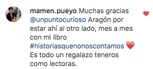 Una vez al mes nos encontramos con @mamen.pueyo para hablar de su libro «Historias que no nos contamos» @imperiumedicion, que se compone de 12 relatos (uno por mes). Hoy hemos hablado del relato de junio y el de julio. Qué maravilla poder hablar con la autora, saber cómo se han ido gestando las historias, ver diferentes miradas de una misma historia… Una sesión llena de magia y emoción. ¡Nos encanta! 💚 📚 👏