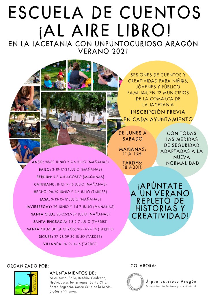 Sábado. Y podemos decir que la primera semana en la ESCUELA DE CUENTOS ¡AL AIRE LIBRE! de Unpuntocurioso Aragón (Jaca) gracias al Área de Cultura la Comarca de la Jacetania ha sido un éxito.
