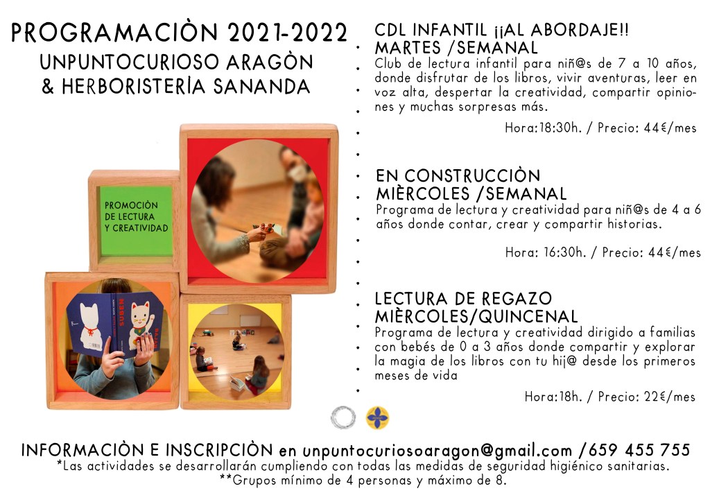 Información e inscripción/es a través de unpuntocuriosoaragon@gmail.com o al teléfono/WhatsApp 659 45 57 55. Y cualquier duda, curiosidad… todo lo que que queráis saber, os atenderemos encantadas.