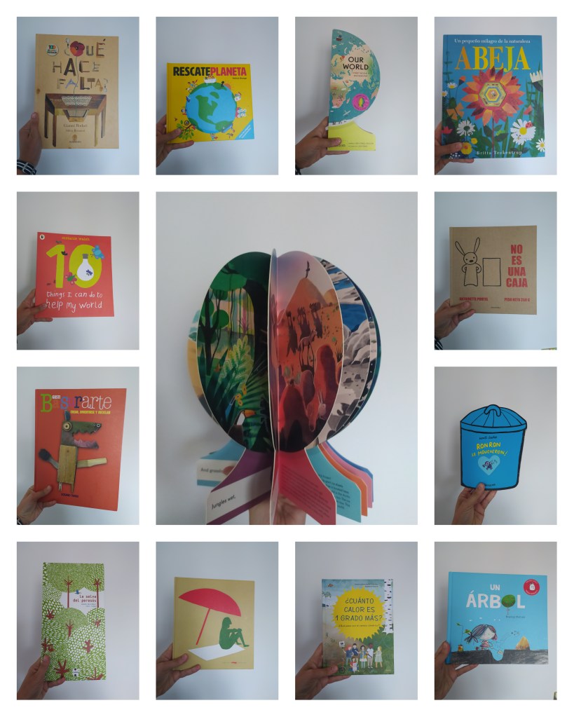 Aquí os dejamos una selección de libros LITERATURA SOSTENIBLE en los cuales nos hemos apoyado -para crear la sesión de cuentos y después el taller- y libros que hemos contado en el cuentacuentos. Además, cada título guarda o la versión curiosa dentro de nuestro Canal de vídeos de Youtube , o la reseña, u otro material para poder descubrir la historia.