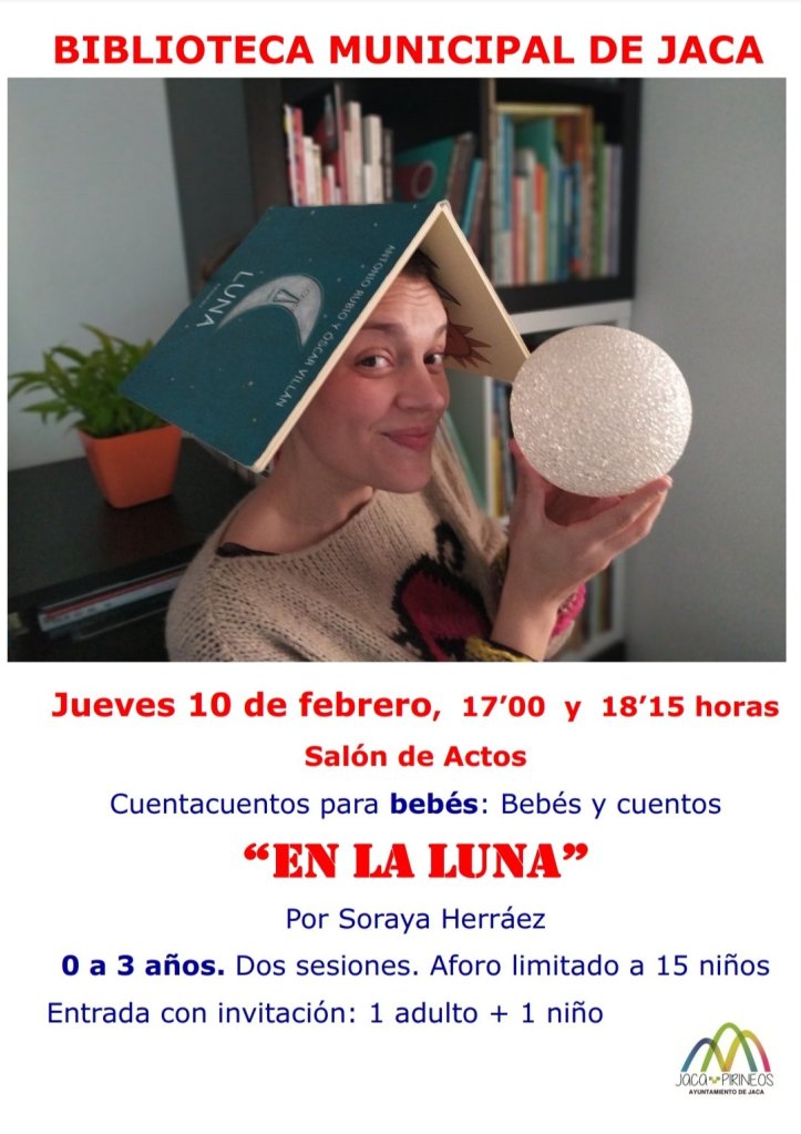 Volvemos a la Biblioteca Municipal de Jaca con una doble sesión de cuentos para familias con bebés de 0 a 3 años: «En la luna». A las 17h. / 18:15h., (adulto + bebé). Necesario invitación.