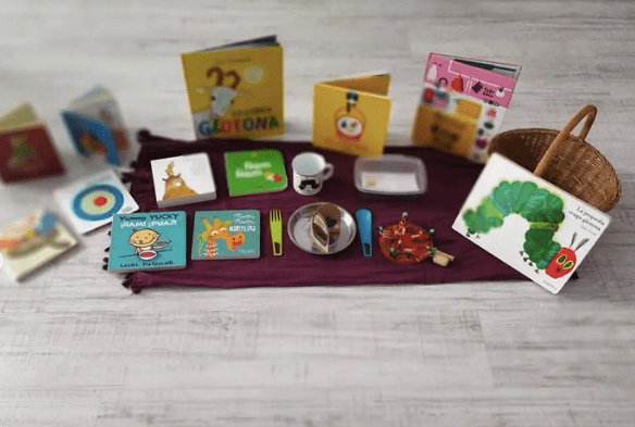 En nuestro programa de leer sin saber -familia, lectura y bebés- LECTURA DE REGAZO la semana pasada nos vestimos de primavera, de poesía y esta semana nos vestimos de libro y comida porque el sol brilla, los frutos nos esperan y nosotros nos paseamos con una cesta cargada con lecturas, poemas, canciones y creatividad de lo más comestible ¡¡ÑAM!!