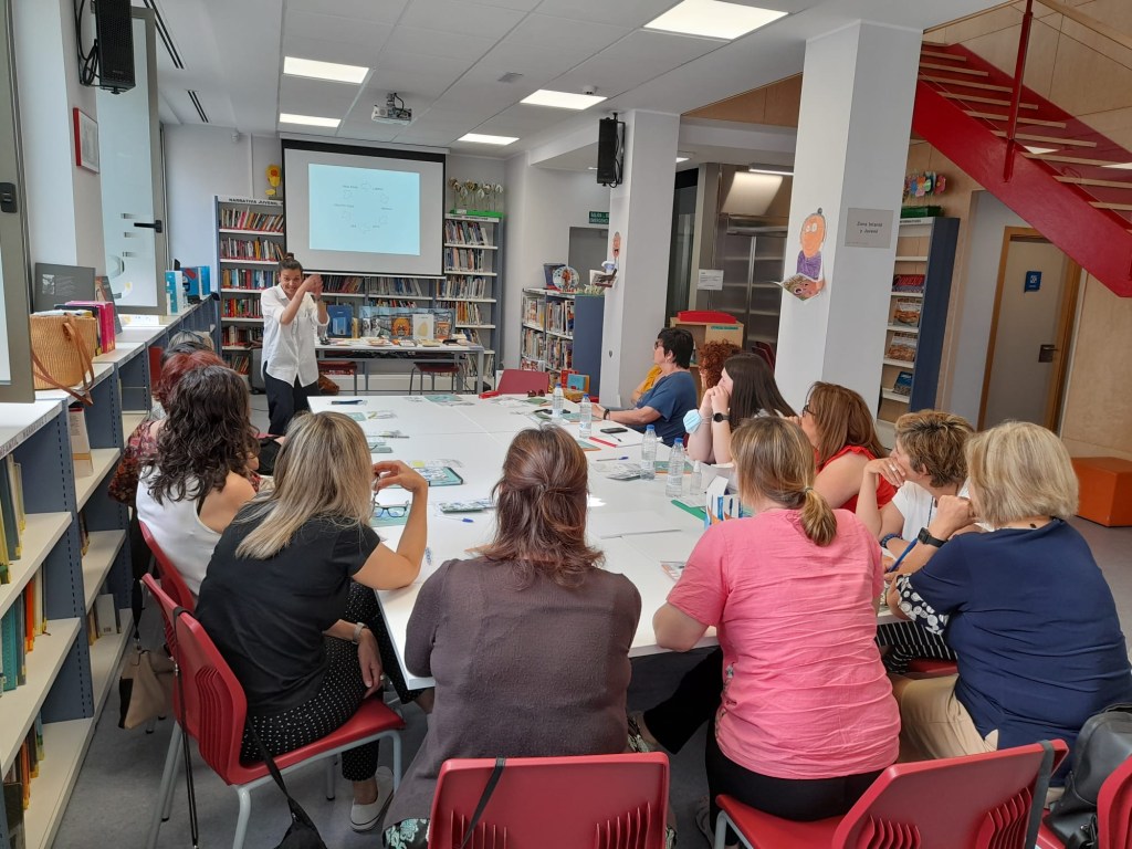 Ayer sábado, comenzó la formación (primera sesión de tres): ¡BIBLIOTECA VIVA! en la Biblioteca de Zuera gracias a ABIMAR -Asociación de Bibliotecarios Municipales de Aragón-.