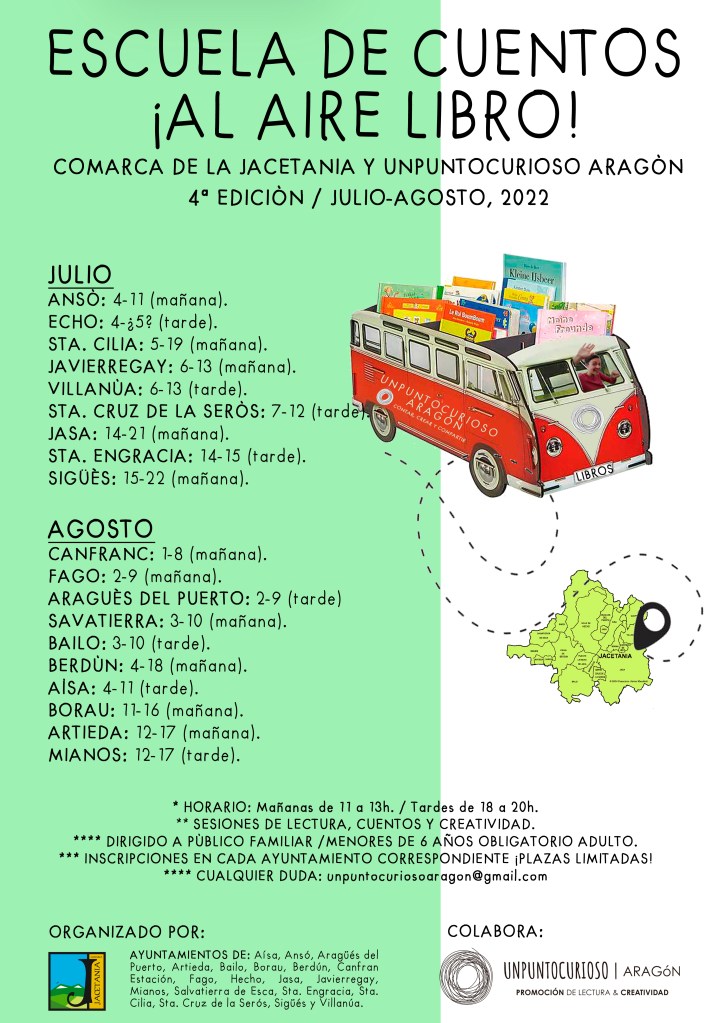 Y NOS VAMOS UNOS DÍAS DE VACACIONES PARA DESCANSAR Y TOMAR IMPULSO porque vuelve la 4ª Edición de la ESCUELA DE CUENTOS ¡¡AL AIRE LIBRO!! por 19 pueblos de la comarca de la Jacetania.