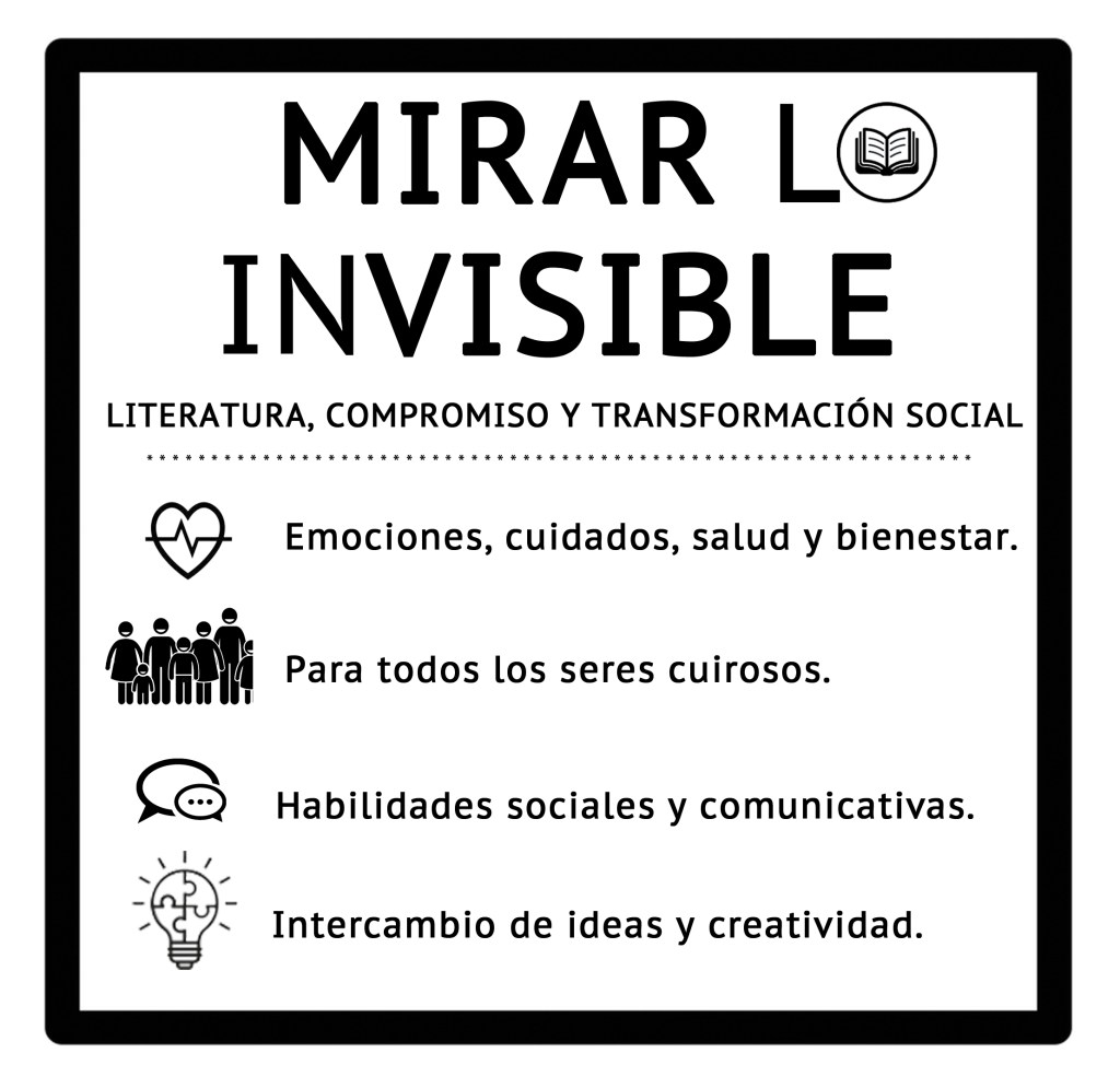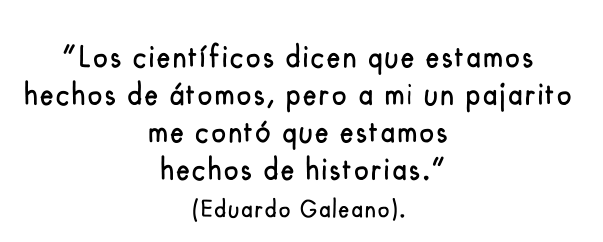 Los cuentos nos prestan sus palabras para detenernos, mirar, despertar la voz dormida, intentar nombrar lo invisible, crear significados a través de una voz propia que ayuda a dar respuestas para ser capaces de comunicar aquello que se guarda (lo invisible).