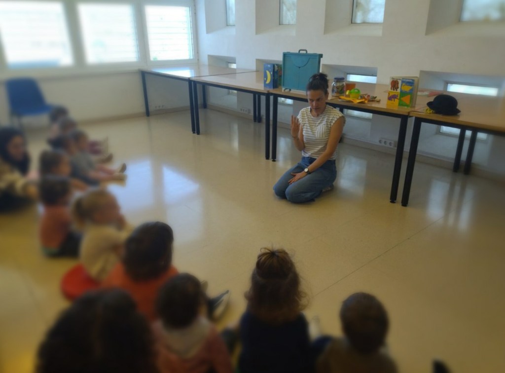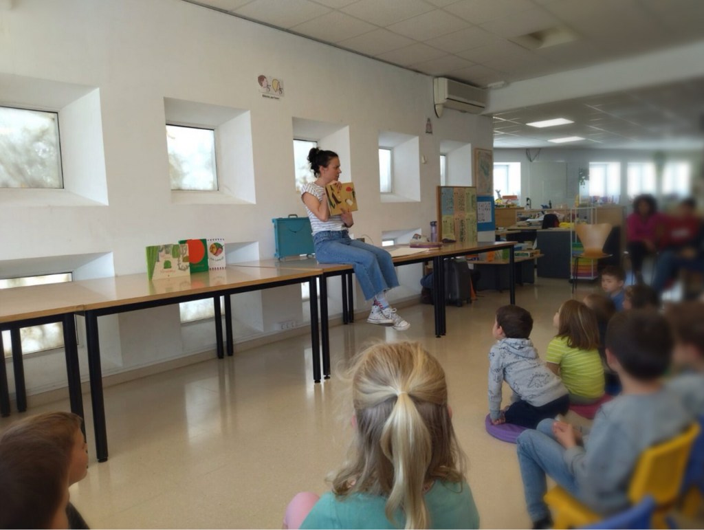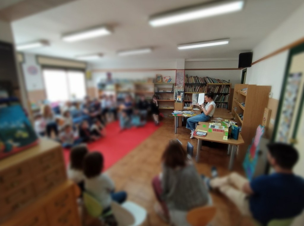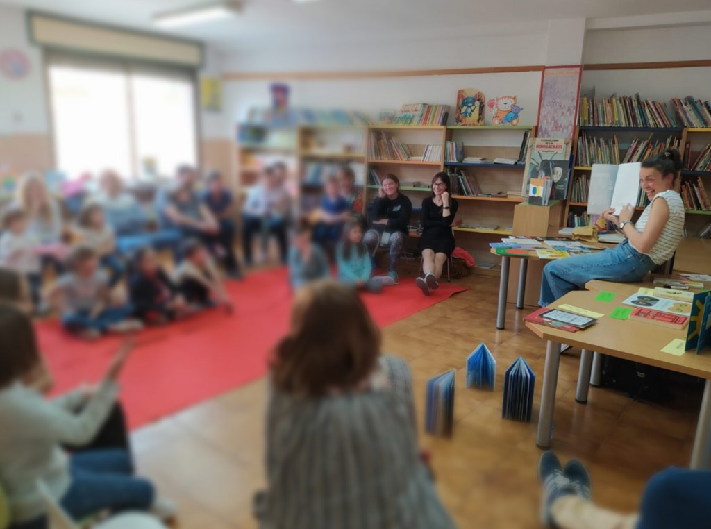 Por la tarde, me esperaban dos encuentros muy especiales en la Biblioteca de Alcorisa junto con Maite, su bibliotecaria, la Escuela Infantil con familias y bebés (de 0 a 3 años) y el Club de Lectura en Familia de la biblioteca.