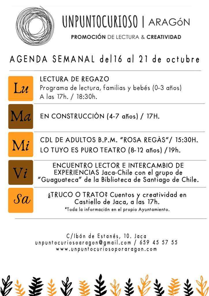 Sí, ¡por fin! qué ganas tenía de que llegara este día. Después de un verano repleto de promoción de lectura y creatividad en Chile y recorriendo 21 pueblos de la comarca de la Jacetania con la biblioteca itinerante: ESCUELA DE CUENTOS ¡AL AIRE LIBRO! compartiendo historias, juego, risas y creatividad, ¡¡HOY!! comenzamos el curso 2023/24 en el espacio de Unpuntocurioso Aragón que está en la calle Ibón de Estanés, 10.