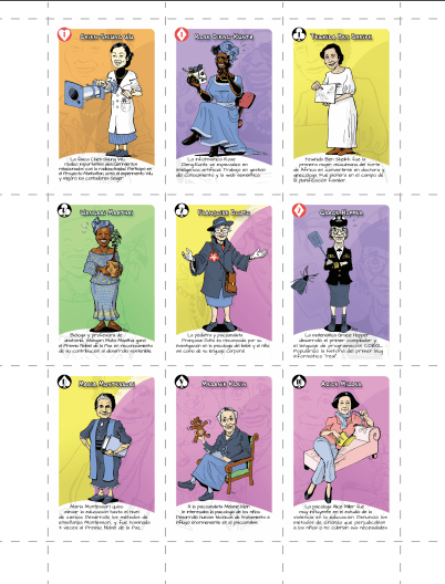 También queremos compartir un juego de cartas MUJERES EN CIENCIA que familiariza a seres curiosos con ganas de jugar, conocer y aprender con científicas sobresalientes y frecuentemente desconocidas. De esta forma, el juego ofrece modelos que pueden servirles de inspiración a l@s niñ@s. El juego se puede imprimir a través de este archivo (PDF) o pedir un paquete a través de la web: LuanaGames.com Un proyecto que pudo crearse gracias a una campaña de financiación colectiva (crowdfunding).