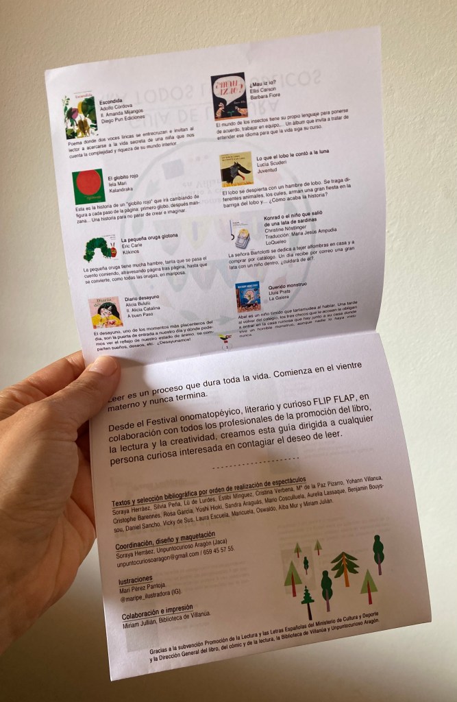 En primer lugar quiero dar las GRACIAS a Miriam -bibliotecaria de la Biblioteca de Villanúa- y a Ana Etxabe -Concejal de Cultura del Ayuntamiento de Villanúa- por contar con mi trabajo tanto para realizar propuestas de animación a la lectura, como para poder diseñar y crear un festival como este, uno de mis sueños como gestora cultural 😉 Me siento muy privilegiada. Gracias de corazón.