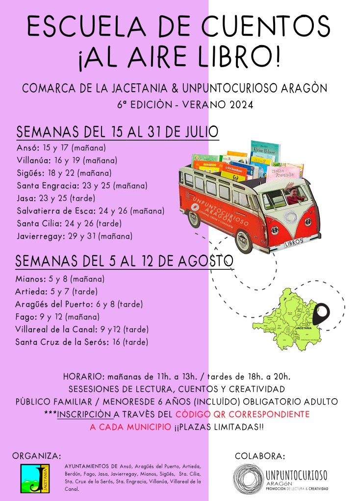 🍃 6ª Ed. de la Escuela de cuentos 🄰🄻 🄰🄸🅁🄴 🄻🄸🄱🅁🄾🍃 la biblioteca itinerante de lectura y creatividad por diferentes municipios de la Jacetania, gracias a la confianza y el apoyo de la Comarca de la Jacetania y los Aytos. de los municipios participantes: Ansó, Jasa, Aragüés del Puerte, Puente la Reina de Jaca, Berdún, Salvatierra de Esca, Sigüés, Artieda, Mianos, Santa Cilia, Santa Cruz de la Serós y Villanúa.