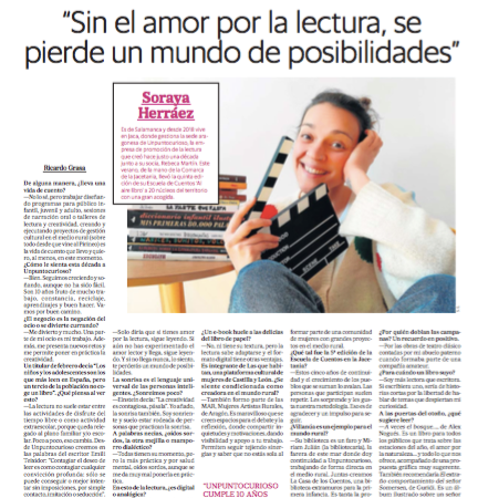 Entrevista Diario del Alto Aragón «Sin el amor por la lectura, se pierde un mundo de posibilidades»